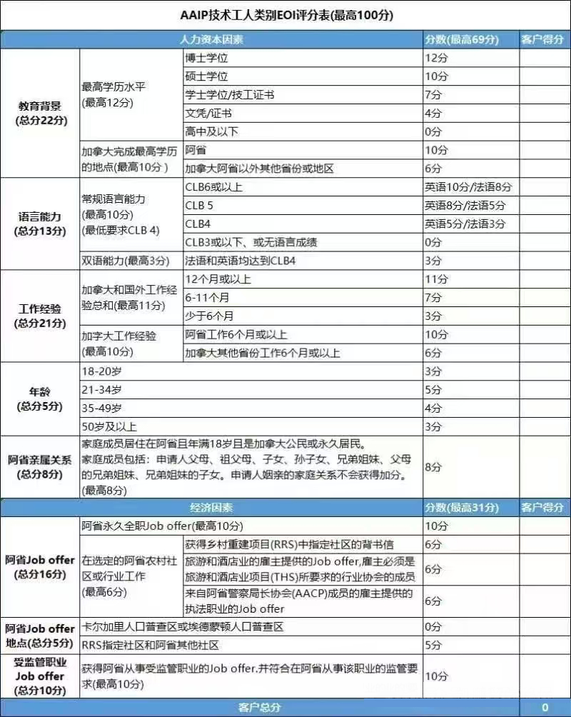 这意味着,如果以上四项加分都没有的话,候选人再不是加拿大毕业的留学生或在阿省有亲戚的话,学历、年龄、工作经验这些分区都是满分,也无法满足70分。